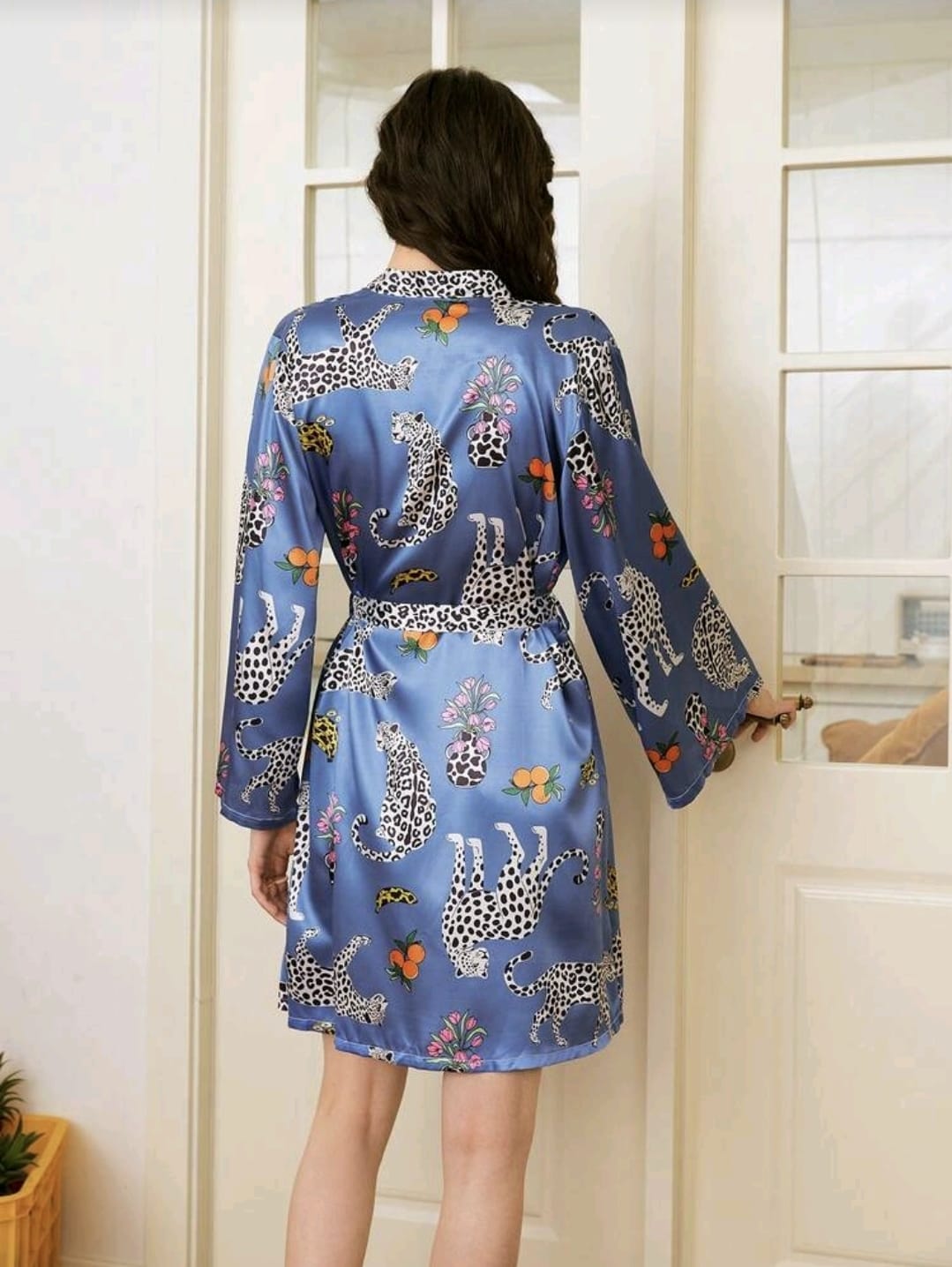 💙 Bata Kimono Satinada Leopardo Azul💙