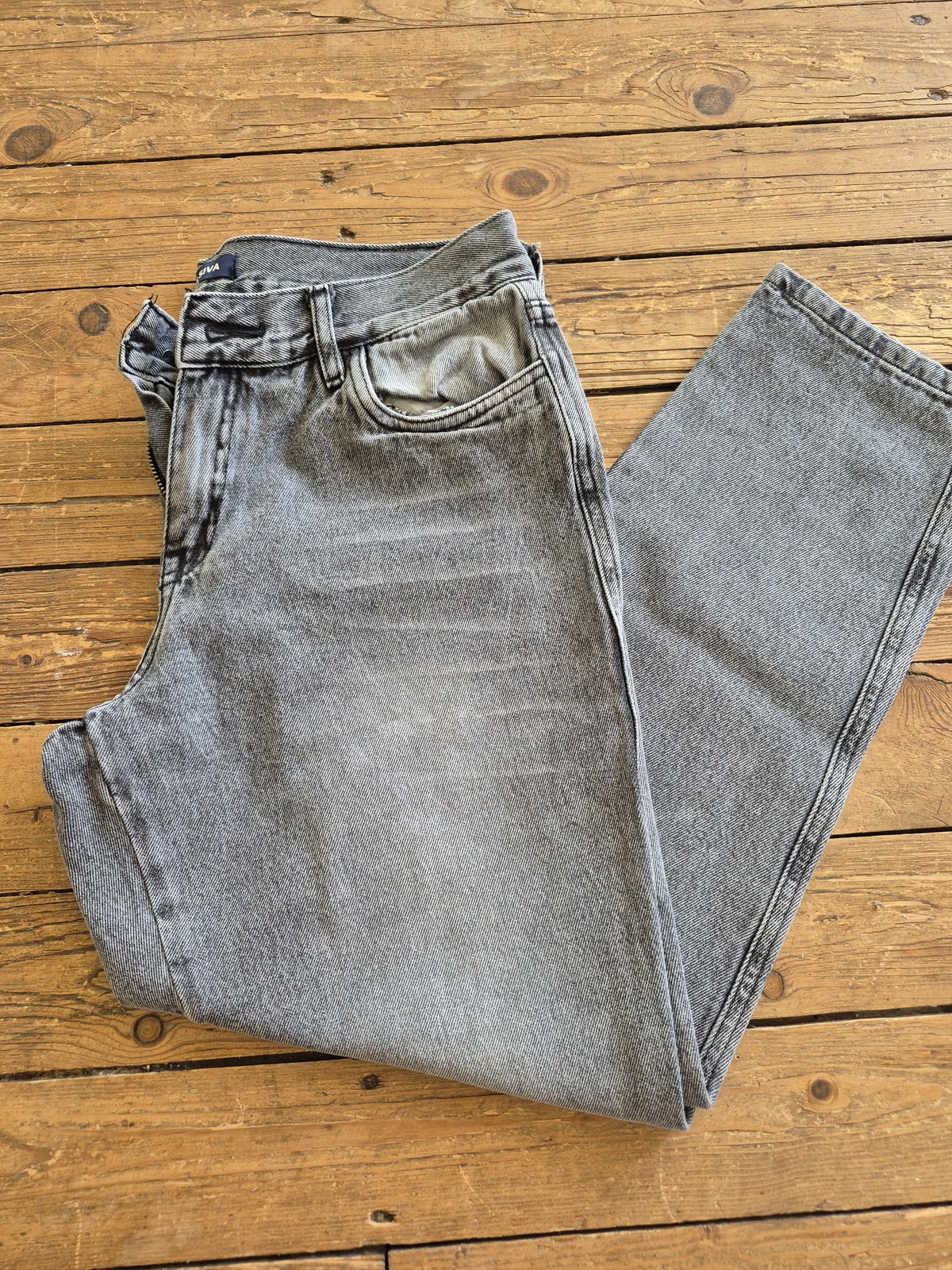 El jean mom gris gastado es ese básico infaltable que combina comodidad y estilo en un solo look. De tiro medio y corte relajado, estiliza la cintura y aporta ese aire vintage que nunca pasa de moda.