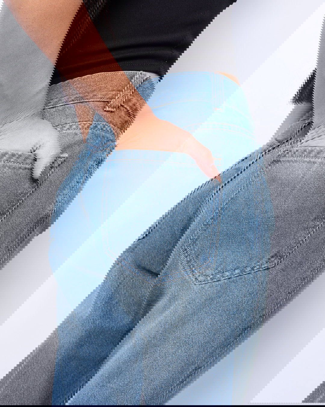 El jean mom azul es ese básico infaltable que combina comodidad y estilo en un solo look. De tiro medio y corte relajado, estiliza la cintura y aporta ese aire vintage que nunca pasa de moda.