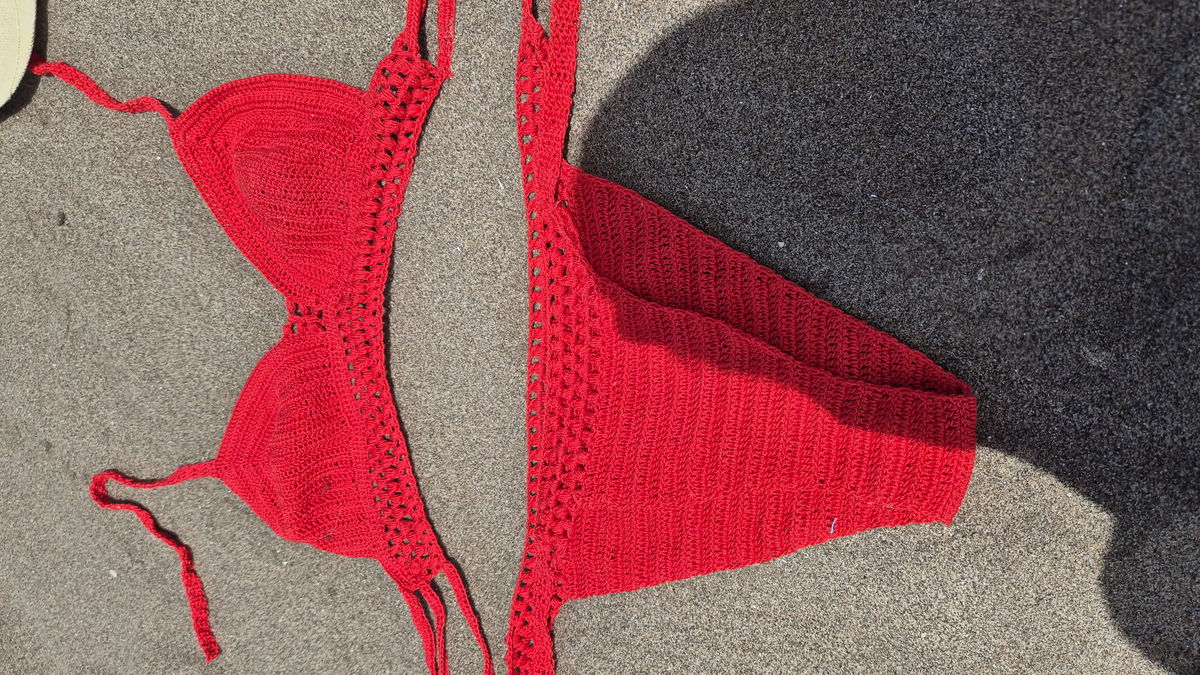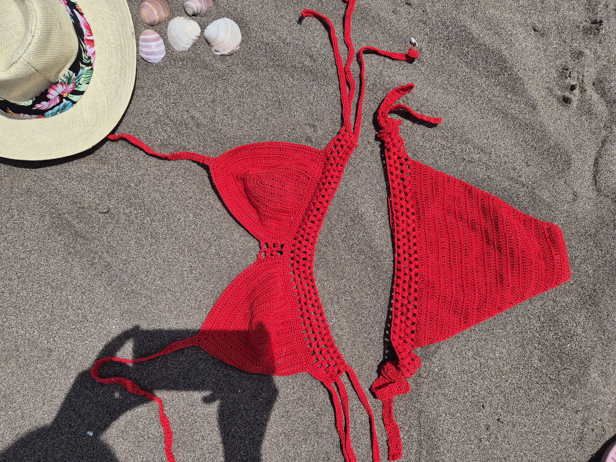 Esta bikinis esta totalmente tejida a mano, es un trabajo artesanal.