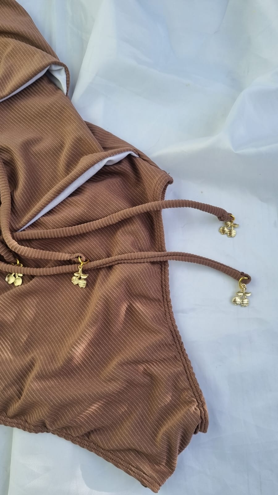 La Positano es una entera confeccionada en Morley texturada de alta calidad, con forrería interna y corte vedetina para un calce perfecto y cómodo. Sus tiras regulables en la parte delantera, adornadas con delicados dijes de cereaz en los extremos, permiten ajustar el escote a tu gusto.