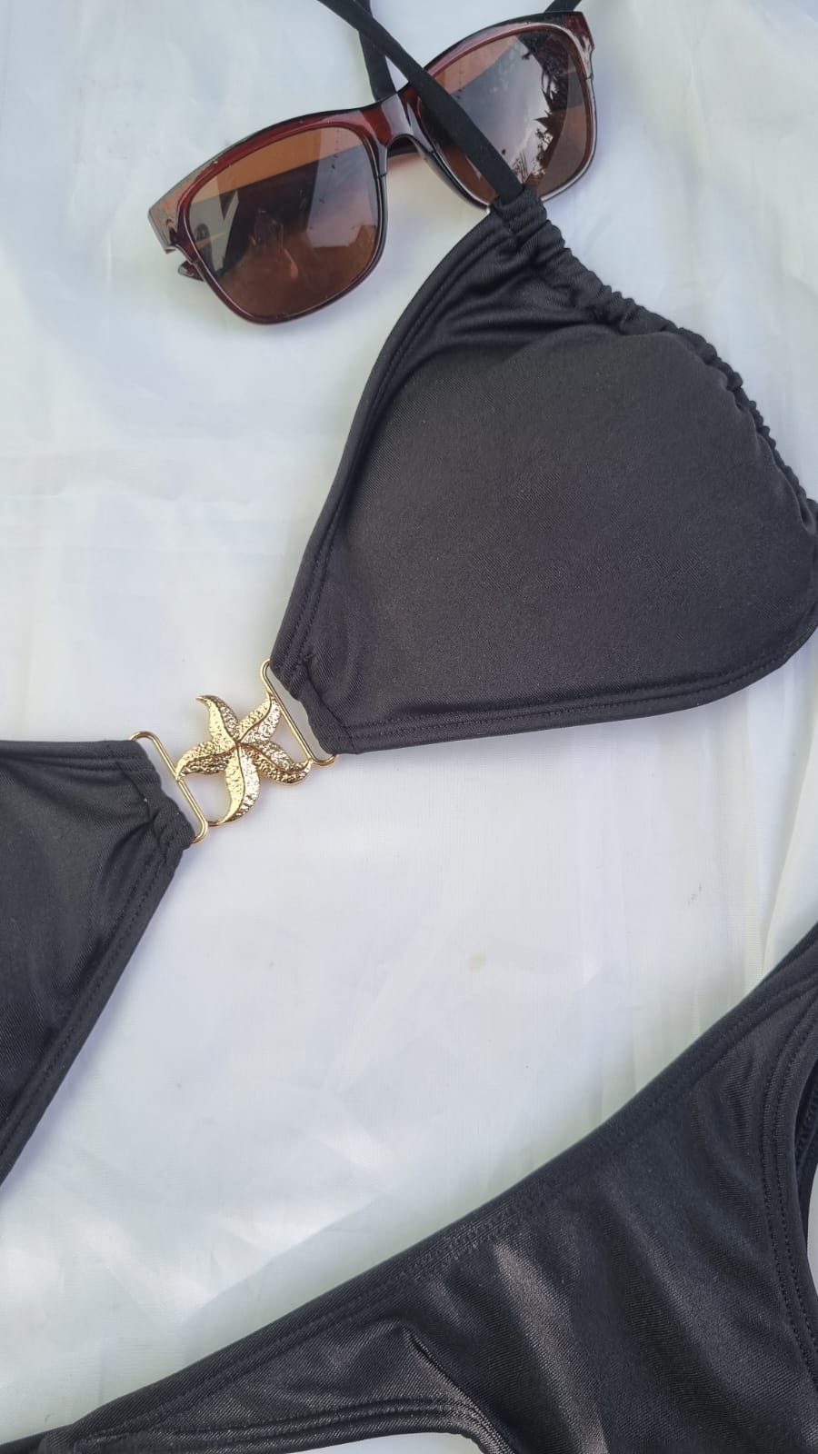 El detalle estrella (literalmente) es su avío central en forma de estrella de mar en tono dorado, que aporta un toque sofisticado y veraniego.