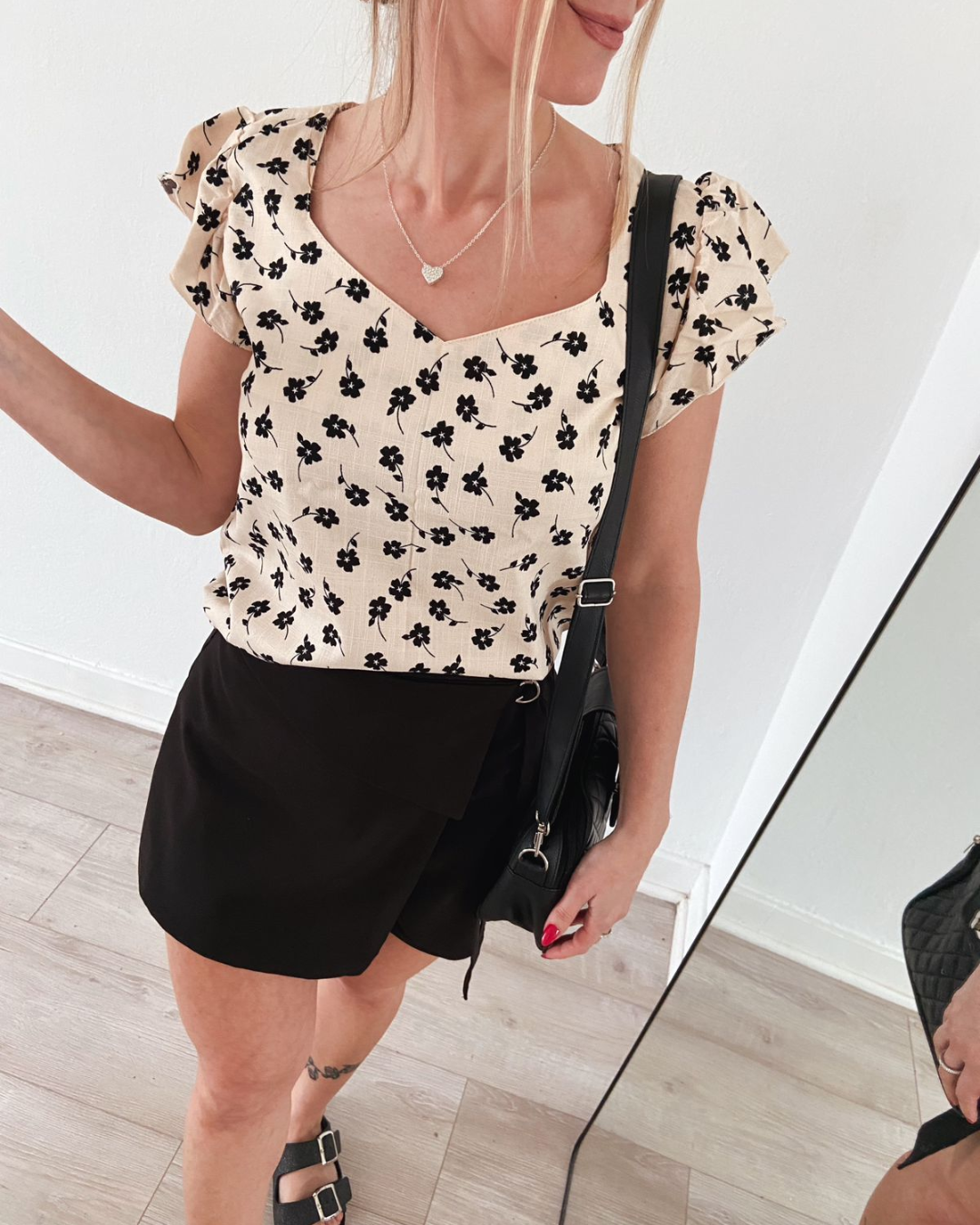 Estampa negra con flores blancas