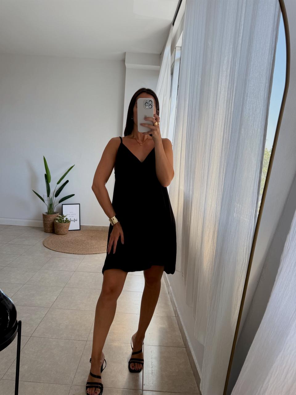 Vestido de líneas simples y elegantes, confeccionado en tela cey, conocida por su caída liviana, suave al tacto y excelente fluidez. Su diseño de escote en V y breteles finos estiliza el torso y realza la silueta sin marcar de más, logrando un look femenino, moderno y cómodo.