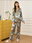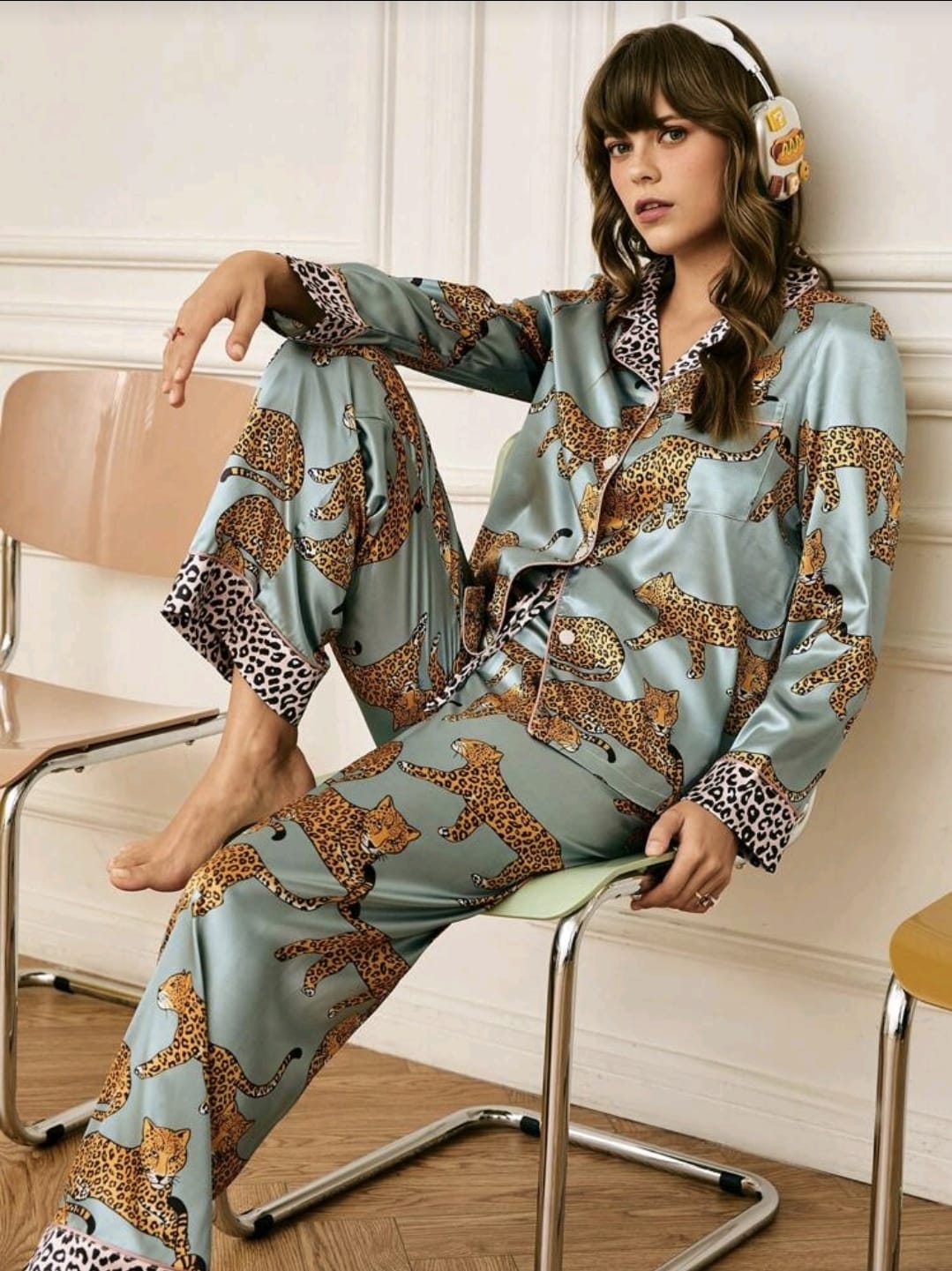 Este conjunto de dos piezas en tela satinada suave y liviana tiene un diseño animal print elegante que transforma cualquier momento de descanso en un pequeño lujo.